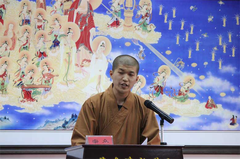 选手的演讲展现了我院学僧较高的综合素养,大家都以清净的心,用佛法的智慧来供养大众,体现出传统的佛教思想和扎实的佛教文化基础。选手们各有所长,有的博众家之言佐证自己的观点;有的辩才突出,逻辑严密条理清晰,重点突出,有的威仪端庄,先声夺人,听众被摄服其心。每位选手演讲后,进入提问环节,除了评委提问,观摩的法师也踊跃参与,当其时,台下提问专业,选手阐述精辟;台下步步逼问,选手应答如流。真可谓八仙过海,各显其能。台上台下热烈互动,形成了浓浓的学术气氛。演讲、答辩、交流在法喜氛围中进行了三小时。