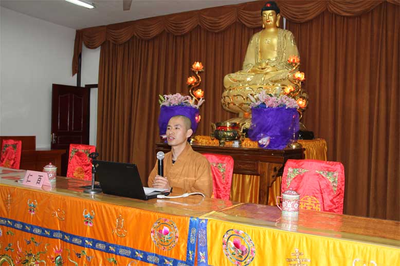 仁百法师讲授了题为“丛林清规”的专题课程,他从“何为丛林”、“丛林清规的由来”、“丛林清规的分类”、“丛林清规对当今佛教的借鉴”等四个方面传授了佛教的基本知识。