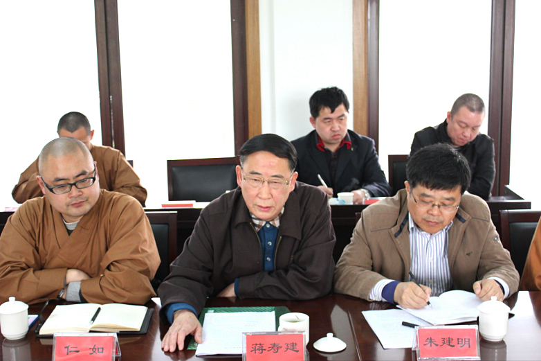 蒋寿建副院长首先代表能修常务院长对国家、省、市宗教主管部门长期以来对鉴真学院j建设办学工作的关心、支持和指导表示衷心感谢,汇报了学院基本建设、招生办学和发展提升三个阶段的办学历程;以及学院近三年来在进一步加强学院办学和管理各项基础性工作;努力传输“爱国爱教”正能量;积极探索“生活丛林化、学修一体化”管理模式;坚持“质量立校”,提升办学质量;积极推进合作办学、开放办学;不断拓展办学功能,放大办学效益等方面的探索和工作举措。最后蒋院长向国宗局提出了四点请求,希望国宗局能在办学经费扶持,教师资格认证和学位授予试点,聘请外教职权和发挥鉴真学院对外交流窗口作用,支持佛教院校专业化、特色化发展等方面给予我院更多的关心和支持。