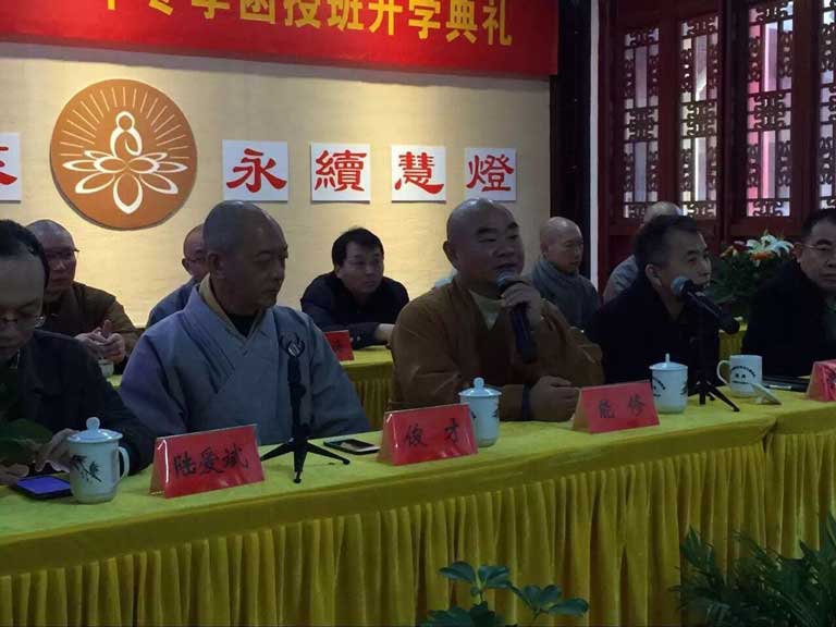 能修方丈、蒋寿建副院长,教务长演海法师,训导长明空法师,校刊编辑部副主任善愿法师等出席开班典礼。