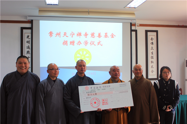 廓尘大和尚在开示时说,赵朴老生前一直强调,佛教事业第一是人才,第二是人才,第三还是人才。天宁禅寺慈善基金会的宗旨就是要引导信教群众与社会主义社会相适应,积极开展捐资助学、扶贫济困等慈善公益活动,服务社会,利益众生。今天,天宁禅寺慈善基金尽微薄之力,捐赠鉴真学院10万元办学经费,只是代表常州佛教界开了头,希望更多的慈善基金、社会各界聚焦佛教教育、支持佛教教育,为中国佛教僧才培养贡献力量。廓尘大和尚勉励全体学僧要刻苦学习,勇猛精进,努力成为佛教的栋梁之才。
