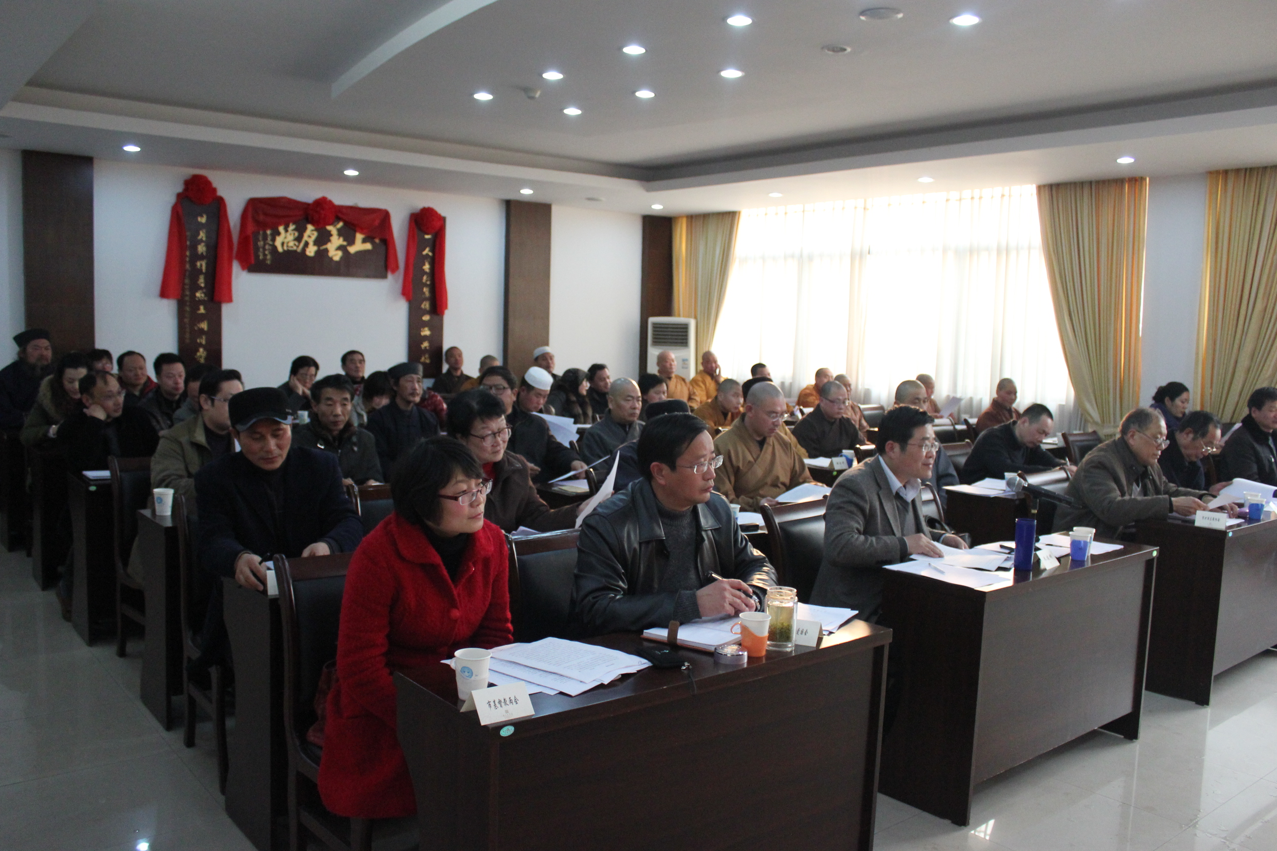 2011年12月13日下午,扬州市宗教幸福观研讨会在大明寺举行,扬州市佛教协会、伊斯兰教协会、天主教爱国协会、基督教两会以及鉴真佛教学院的负责人出席研讨会,并分别围绕宗教教义教规,深入阐述了宗教幸福观的内涵,及其在构建和谐社会,促进幸福扬州建设中的积极作用。扬州市民宗局朱建明副局长主持研讨会,陈云观局长出席会议并致辞。市各大宗教代表、宗教干部、信教群众代表参加会议。(宋华忠、薛志勇)