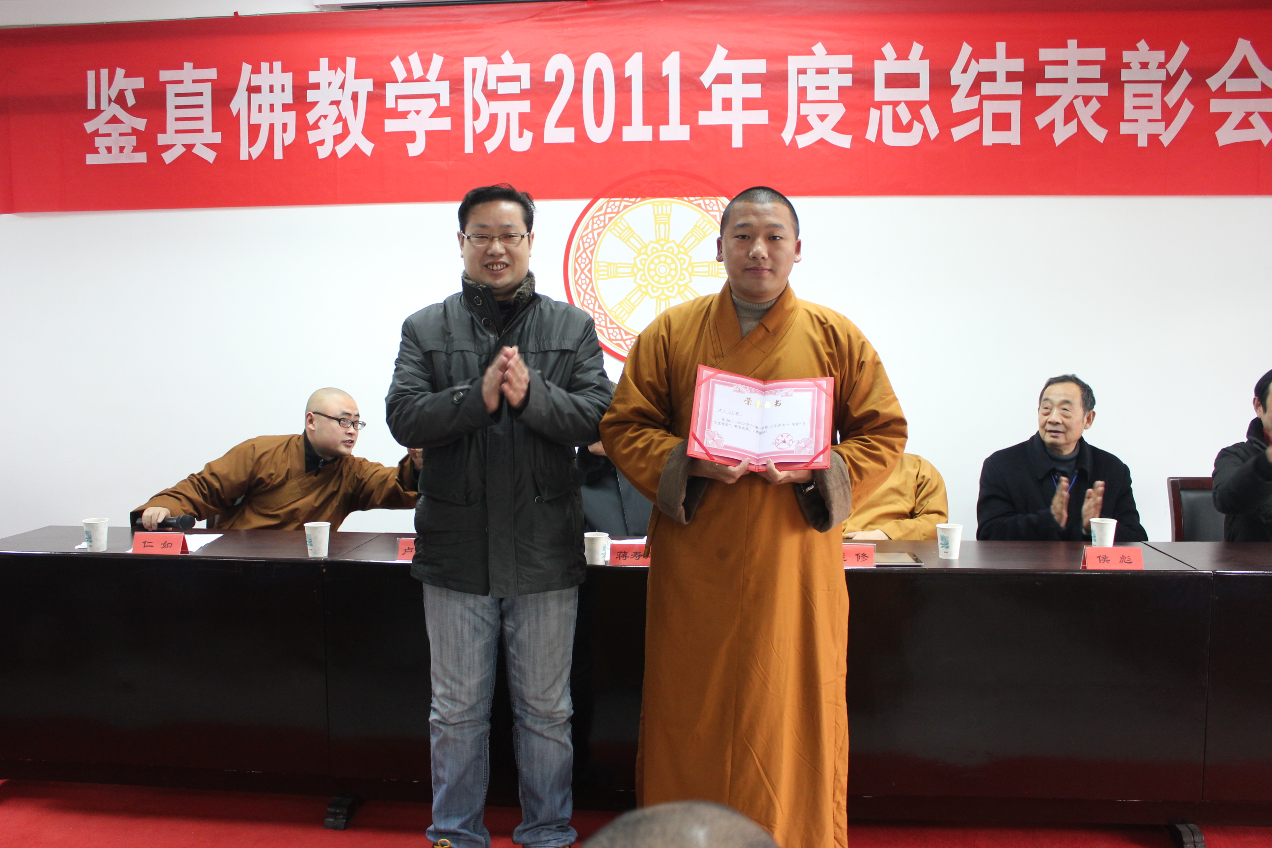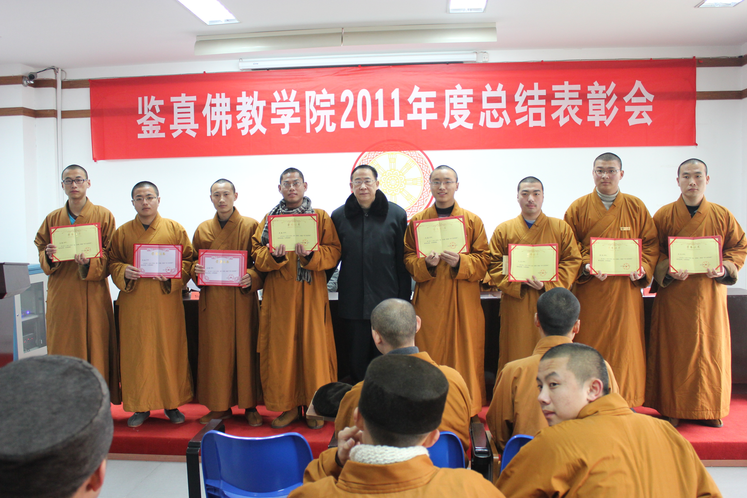 去年3月17日,国家宗教局批准鉴真学院正式设立,成为全国唯一一所培养佛教外语人才的高等佛教院校;学院上下以此为契机,狠抓教育、教学质量,加强道风威仪教育,深化学院各项管理工作,学院的面貌有了新的变化。2012年1月13日我院举行了年度总结表彰会,蒋寿建副院长作年度工作总结,能修方丈作了开示,对优秀学僧及集体进行了表彰。会议由仁如教务长主持,院领导能修、蒋寿建、朱操及市宗教局卢道岭处长、市佛教协会侯彪副会长出席了会议。