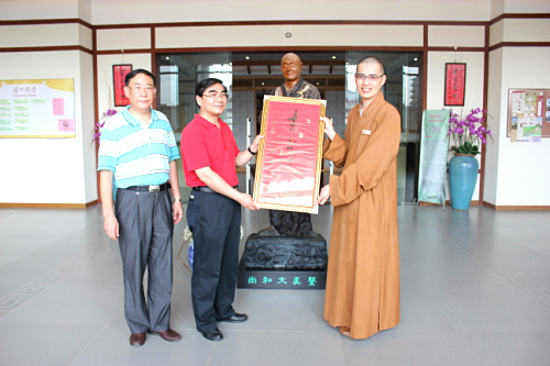 2012年8月12日,天津市委常委、宣传部长陈其圣同志来我院考察指导,在学院副院长蒋寿建的陪同下,参观了大明寺、鉴真图书馆。