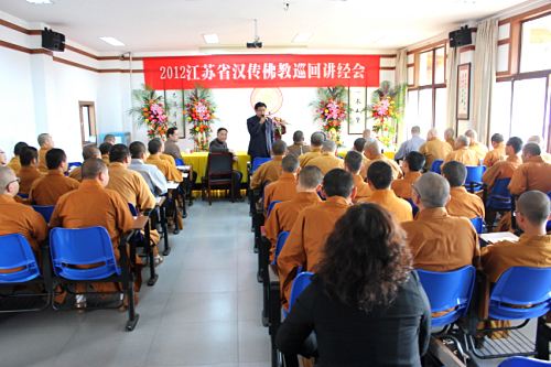 2012年10月31日,2012江苏省汉传佛教巡回讲经会在鉴真学院举行,我院全体师生和信众一百余人聆听了现场讲经。讲经会上寒山书院悟德法师宣讲了《普门品》,戒幢佛学研究院宏净法师宣讲了《行愿品》,鸡鸣寺尼众部超慧法师宣讲了《心经》,鉴真佛教学院明空法师宣讲了《心经》。法师们精彩的讲演受到了学僧和广大居士信众的热烈欢迎。江苏佛教协会副秘书长陈建华、南通市佛教协会副会长文定大和尚、扬州市佛教协会副会长侯彪、鉴真学院常务院长蒋寿建、市宗教局卢道岭副处长等领导一起参加了讲经活动。