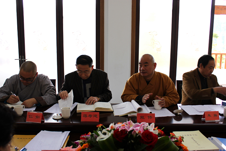2012年11月2日上午,江苏省宗教局人教处王晓利处长带队来鉴真学院调研宗教院校思想政治教育工作,实地察看了学院教学及生活设施,开展了问卷调查。学院能修常务院长、蒋寿建副院长向调研组汇报了我院开展思想政治教育工作的情况。扬州市宗教局薛清副局长、卢道岭处长陪同调研;我院法师、教师参加了会议。
