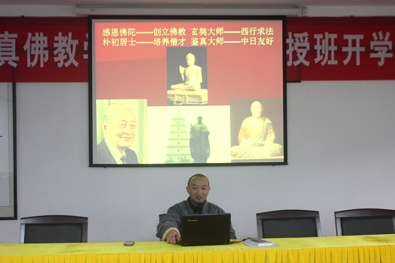 2013年1月23日晚,为期三天的鉴真学院大专函授班圆满结束,函授班全体学僧法喜充满。