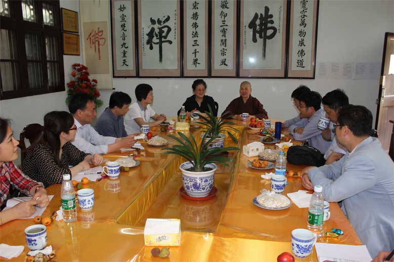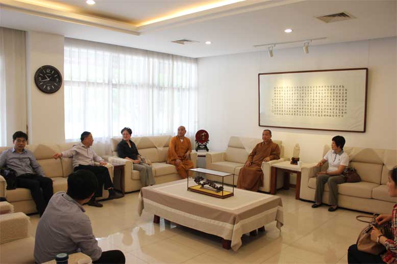 521,江苏省宗教局顾传勇副局长、王晓丽处长和省财政厅时向红处长、曹建林副处长等一行七人莅临鉴真学院,开展了为期一天的考察调研。调研活动中,调研组成员一看(看教室、看寮房、看殿堂,看学僧墙报,看校园环境,实地查看男众部、女众部,参访鉴真图书馆,深入了解学僧的生活学修情况);二听(分别听佛学课、外语课、国学课,听取蒋寿建副院长所作的学院发展情况汇报);三交流(在座谈会上同教职工开展交流),这是省宗教局、财政厅在党的群众路线教育实践活动中改进作风、服务基层,为宗教教育办实事的一项实际举措,受到了全院上下的热烈欢迎和衷心感谢。