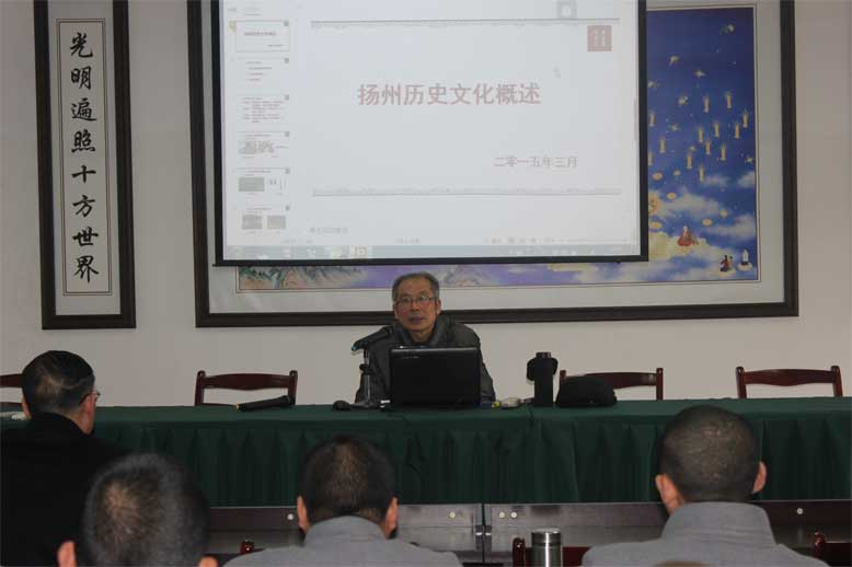 顾风研究员两个半小时的报告给全体师僧上了一堂生动的扬州历史辅导课,让大家进一步了解扬州辉煌的历史,热爱扬州这座历史文化名城。