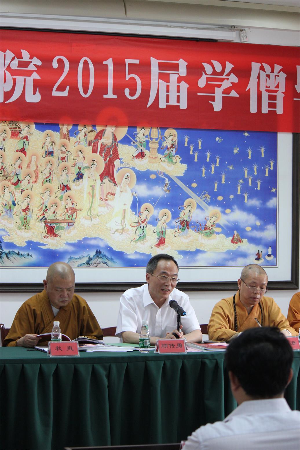 在毕业典礼上,能修常务院长代表学院致辞,毕业班学僧玄光法师、慧净法师、教师代表演海法师分别作了发言;心澄会长作了重要开示,顾传勇副局长作了热情洋溢的讲话。