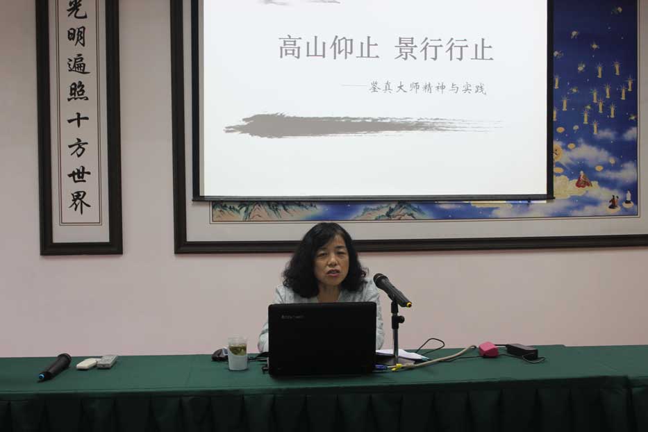 在讲解大师精神方面,梁老师说,在世界佛教史上,鉴真将律宗传至日本,只有菩提达摩在中国开创禅宗一事,可与之比拟。他对日本佛教、文化事业的贡献和影响,是怎么评价都不会嫌高的,梁老师从“慈悲关怀的菩萨精神,坚定不移的信念精神、无私无畏的实践精神等三方面对鉴真大师感天动地的实践活动给学僧做了详细的阐述。