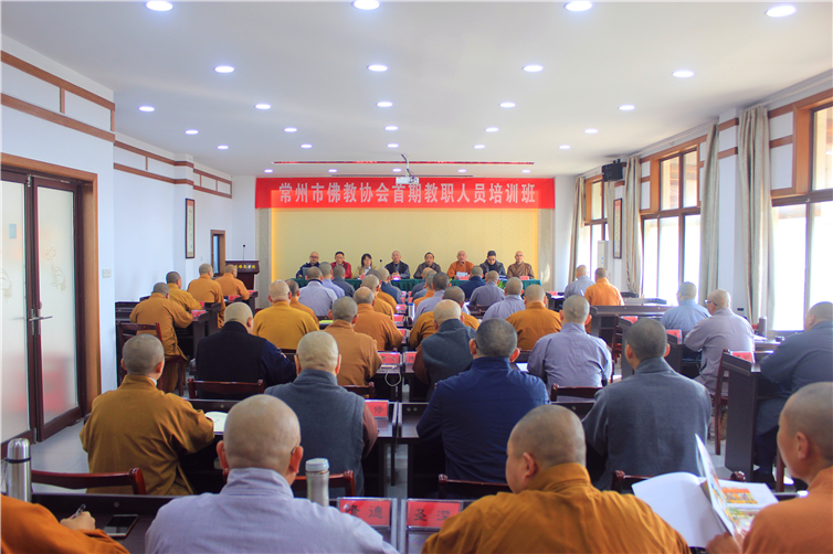 2018年11月9日8:30许,常州市佛教协会首期教职人员培训班在我院开班,来自常州市35所寺院的45位法师将参加为期7天的集中培训,重点学习基础佛学、宗教政策法规知识、佛教去商业化、爱国爱教等方面知识。