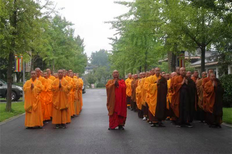 9月2日上午,举行升国旗仪式,能修院长在国旗下作爱国爱教开示。