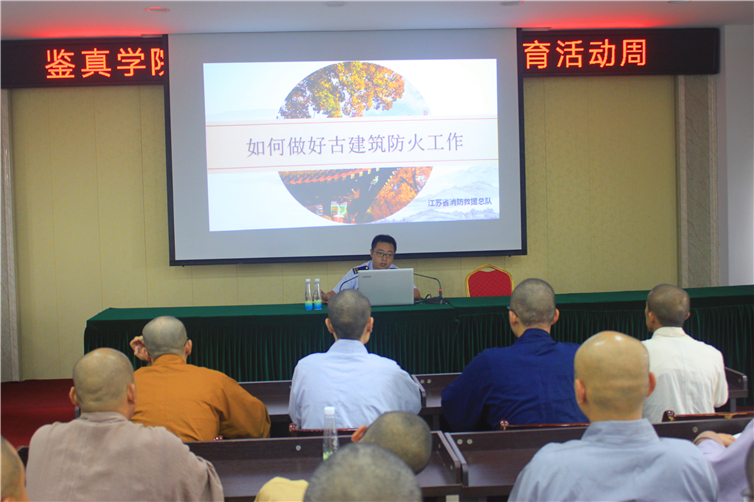 9月6日下午,邀请景区消防大队陈教官,围绕寺院古建筑防火进行专题消防讲座。
