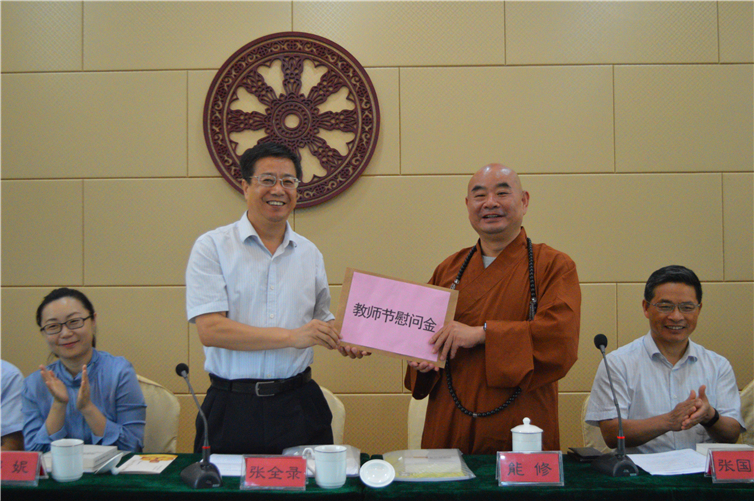 金秋九月,秋高气爽,硕果飘香。9月8日下午2:30,在第35个教师节来临之际,江苏省民宗委张全录副巡视员来鉴真佛教学院慰问全体教师,并出席学院2019年秋季开学典礼。