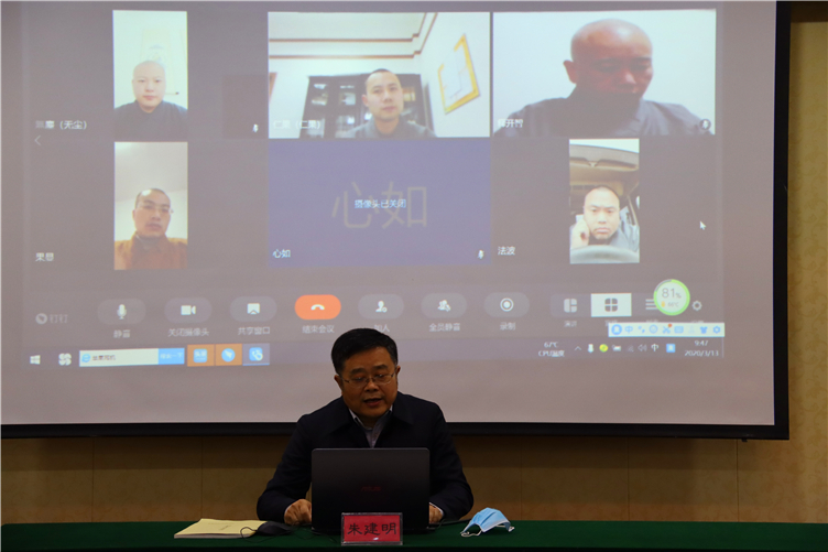 课后朱建明局长通过视频软件向正在听课的学生问好,并与学生们进了简短的交流:在举国上下齐心合力抗击疫情的艰难时刻,鉴真学院积极用心筹备各类防疫物资,为开学做准备工作。与此同时,按照中佛协“双暂停一延迟”、“延期不返校、延期不停教、延期不停学、延期不停研”的要求,积极响应号召,停止一切集体活动,开通了网络教学,得到了省民宗委的肯定。市局对鉴真学院在线教学事宜很重视,相信通过老师和学生在线的互相沟通、互相切磋、互相促进能够使我们的教学效果越来越好。同学们在保护好自己的同时要加倍努力、自觉学习、用功学习,争取健康成长、早日成才。鉴真学院全体师生要像鉴真大师一样,无论经历什么样的磨砺,都要百折不挠,更加坚强。希望鉴真学院继续坚持防疫工作、坚持“停课不停学”,上好网络课,保持疫情中的学习成效。
