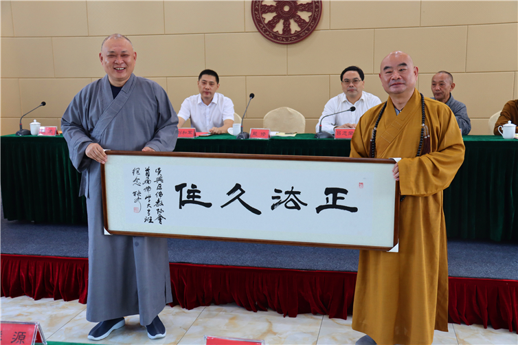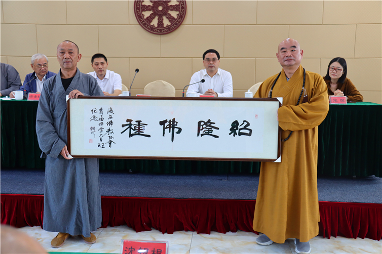 毕业典礼上,鉴真学院向海安市和吴兴区佛协赠送了“绍隆佛种”、“正法久住”的纪念牌匾,希望今后继续深化办学合作,为佛教人才的培养贡献力量。