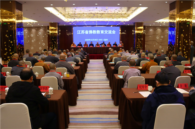 20201218日至19日,江苏省佛教教育交流会在扬州召开。全省12所佛教院校院长、教务长、佛学课骨干教师以及杭州佛学院和闽南佛学院代表应邀出席交流会。