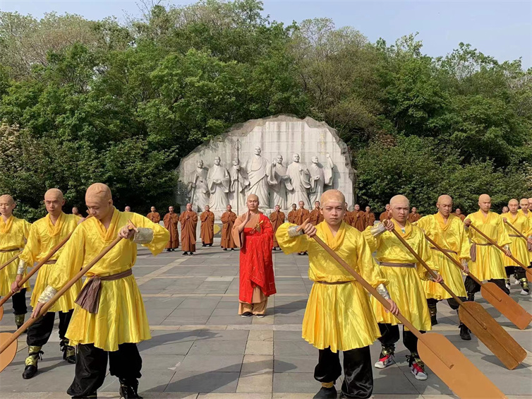 我院30名学僧在鉴真广场参与《鉴真东渡》情景表演,助力“扬马”。