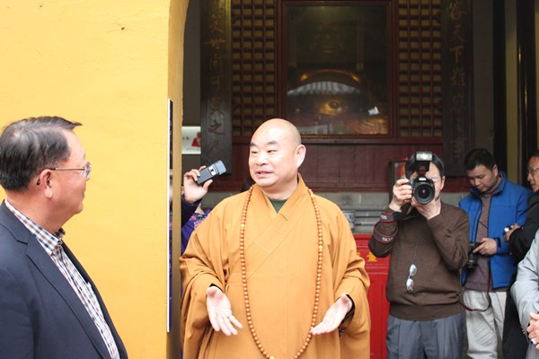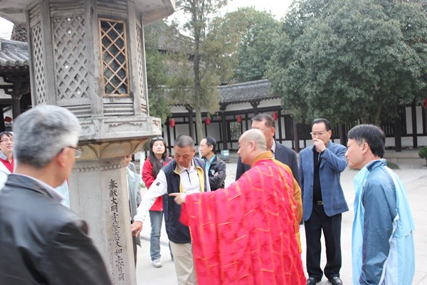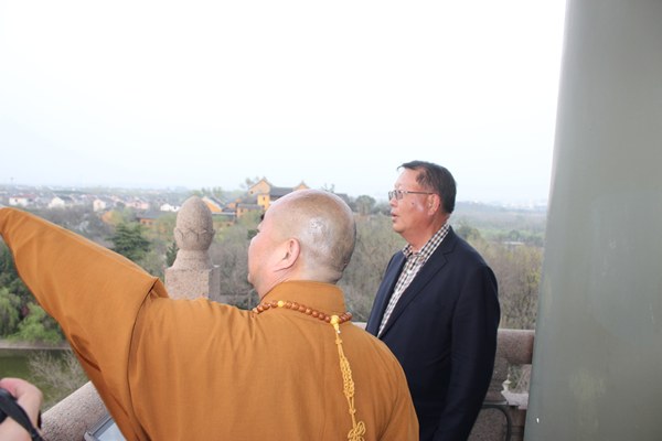 常务副院长能修向梁树森介绍大明寺情况