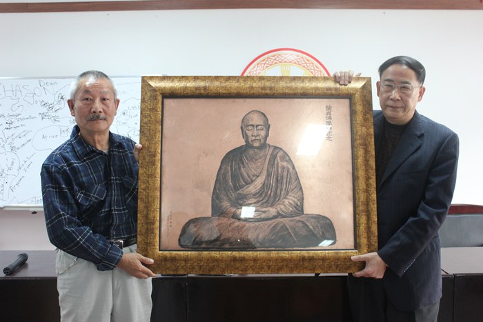 张树发教授向学院捐赠铜板素描《鉴真坐像》