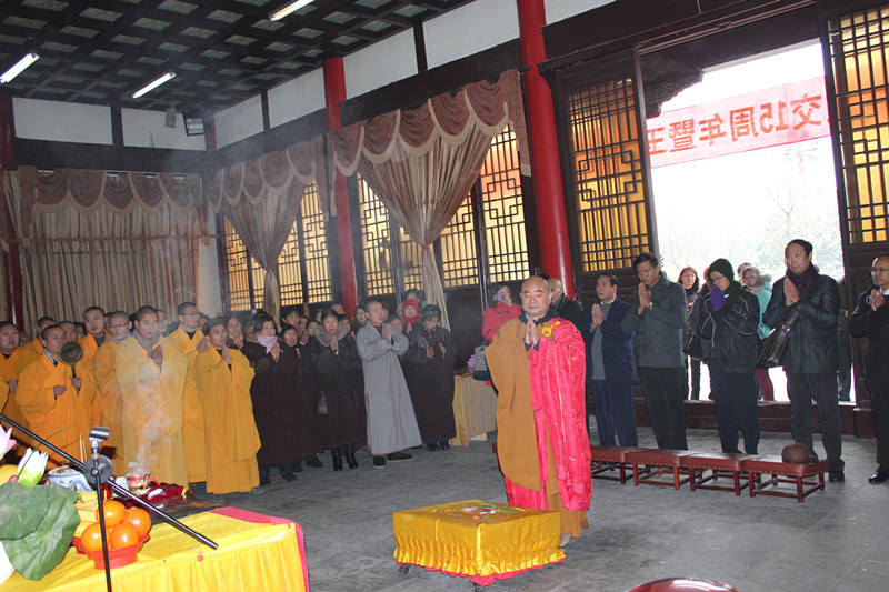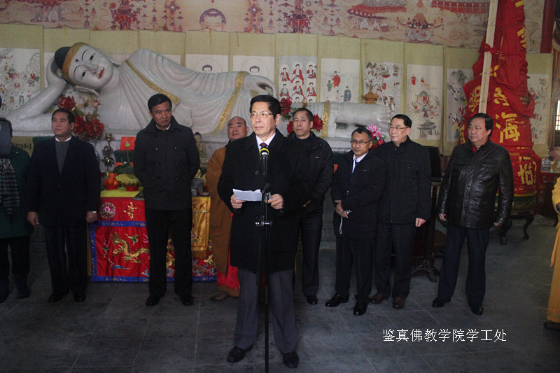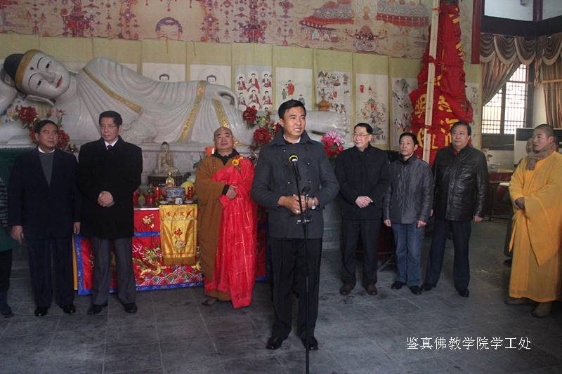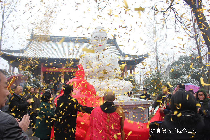 20121226日上午10:00,佛光普照,瑞雪飘飘。我院学僧、大明寺常住僧众、居士信众、扬州市政府领导、各界嘉宾与缅甸仰光市政府领导在大明寺卧佛殿前隆重举行玉佛开光法会。