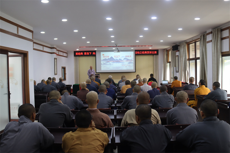 10月27日下午,我院以“赏经典思当下向未来”为主题,开展“中华优秀传统文化学习教育活动之经典赏析比赛”;各年级经推选,有八名学生代表参加比赛。常务副院长宗金林、副院长宋华忠、教务处副处长圣敬法师以及市民宗局院校处负责人张琛担任评委;开智法师主持活动。 八位参赛选手分别选取苏轼《水调歌头》、杜甫《春望》、曹植《白马篇》、陆游《示儿》、王维《山居秋暝》、...