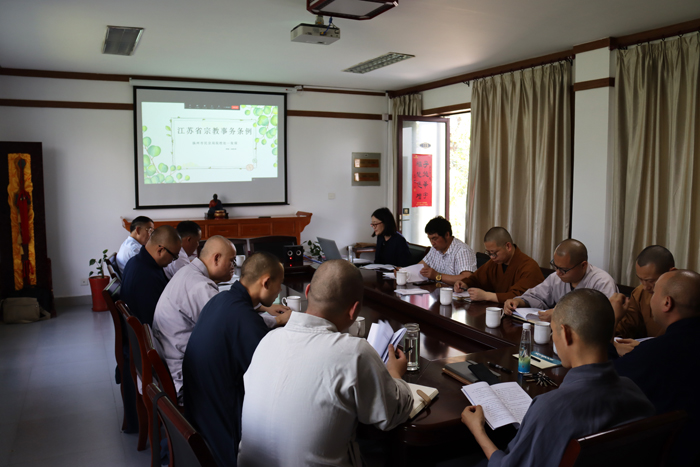 5月24日下午,我院组织全体师生线上线下共同学习新修订的《江苏省宗教事务条例》,市局副局长廖勇,市局院校处负责人王清荣,鉴真学院副院长蒋寿建参加学习活动。市局院校处督导专员张琛应邀对新修订的《江苏省宗教事务条例》进行了详细的解读,她从法律地位、修订思路和原则、修订主要方面、关注重点四个方面,介绍了新修订《条例》的重点条款及配套规章,并对有关规定和要求进行了说...