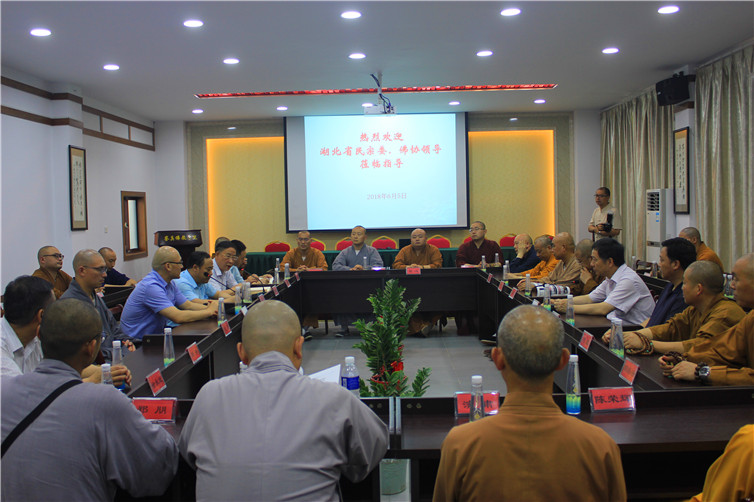 2018年6月4下午,湖北省民宗委熊华启副主任,中佛协副会长、湖北省佛协会长正慈大和尚等一行30余人莅临扬州大明寺、鉴真学院考察调研。江苏省宗教局刘克元处长、扬州市宗教局廖勇副局长、扬州市佛教协会副会长能度法师等陪同考察调研。扬州大明寺仁永、仁百两位监院热情接待调研的领导并介绍了大明寺的历史文化。参观大明寺后,参访团一行到我院举行座谈会,蒋寿建副院长介绍了学...