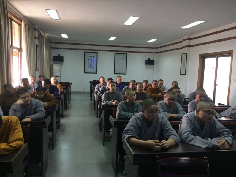3月2日上午,我院召开了全体法师老师会议。常务院长能修大和尚首先祝法师老师元霄节快乐,随后给大家作了重要开示。能修院长开示说:今天新学期开学了,看到大家饱满的精神状态,我很高兴。去年十月份党的十九大会议在北京胜利召开。眼下,全国第十三届人大和政协会议将分别召开一次全会,我们国家迈进了新时代,呈现出一派欣欣向荣的新气象,真可谓“人民有信仰,民族有希望,国家有力...