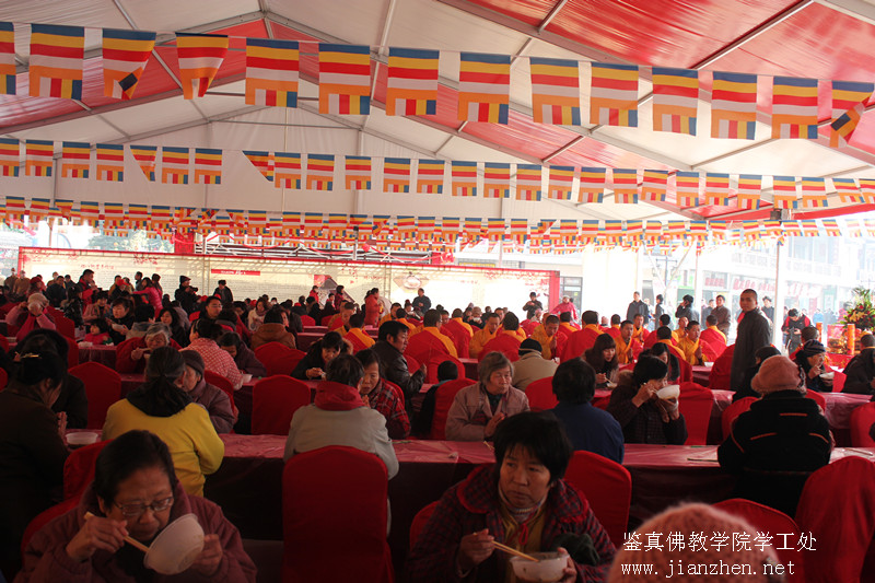 2013年1月19日,是佛祖成道纪念日,即中国传统节日腊八节,全国各地寺院举办敬佛赠粥活动,我院学僧参加了南禅寺南广场举办的“热粥热心肠,暖冬暖人心”2013千人慈善腊八粥会。上午9:00,江苏省佛教协会副会长、无锡市佛教协会会长、南禅寺方丈能开大和尚带领南禅寺书画院华毅、沈海清、吴世林等15名德高望重的书法家义务写春联赠送市民,能开大和尚提笔书写一个刚劲有...