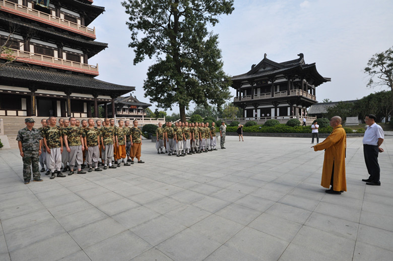 院领导观看新僧军训队列汇报表演